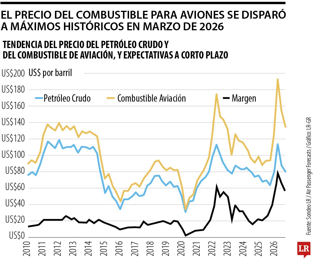 El impacto se agrava por el conflicto en Medio Oriente, que ha encarecido el crudo y reducido la demanda; mientras las aerolíneas trasladan estos sobrecostos a usuarios