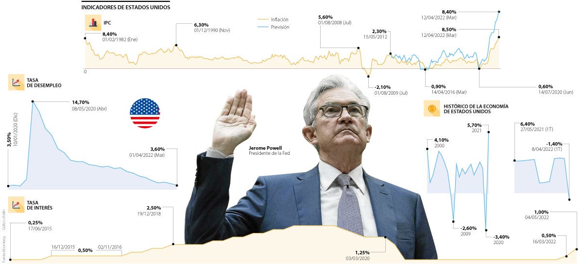 La Reserva Federal elevó las tasas de interés en el incremento más pronunciado desde el año 2.000 y decidió comenzar a reducir su enorme balance general, desplegando el endurecimiento más agresivo de la política monetaria en décadas para controlar la inflación galopante que está en 8,5%.