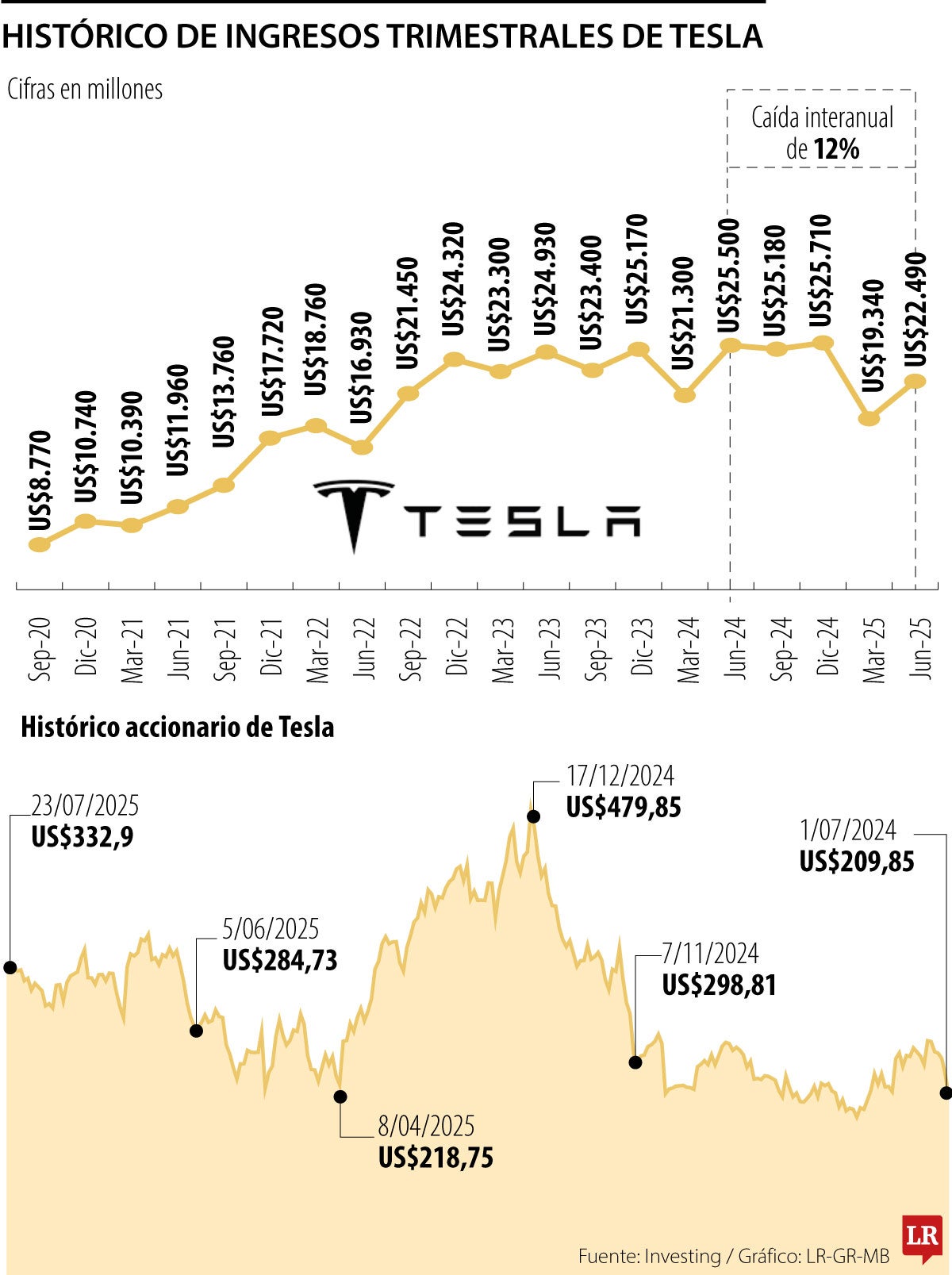 Tesla informó la mayor caída en sus ingresos trimestrales en más de una década, con una contracción de 12%.