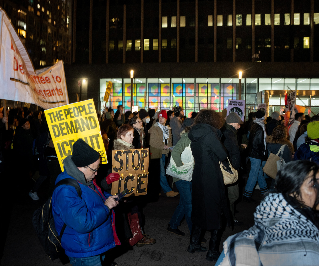 Protesta contra el Servicio de Inmigración y Control de Aduanas (ICE) en la ciudad de Nueva York