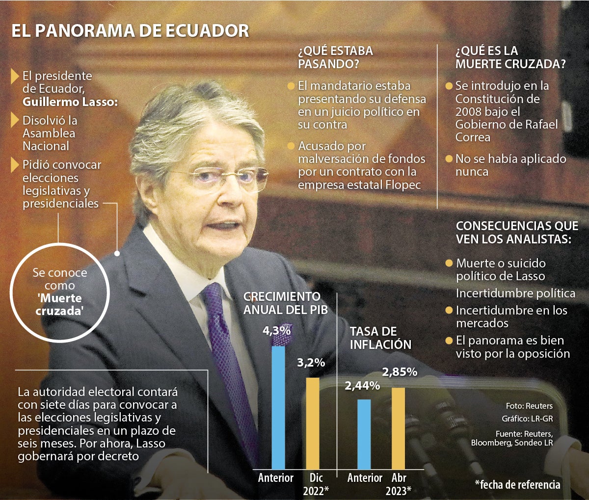 Y antes de que, siquiera, se hablara de este desenlace, en la mañana de ayer Lasso despertó a los ecuatorianos y al resto del mundo con la decisión de disolver por decreto la Asamblea Nacional, con lo que se tendrán que adelantar las elecciones legislativas y presidenciales.