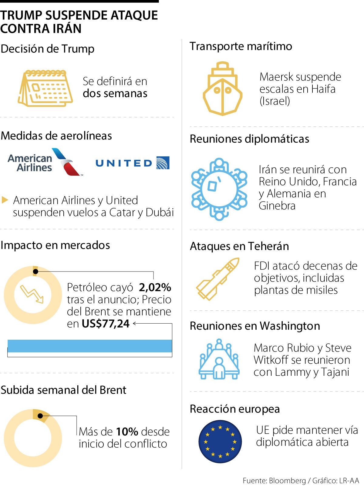 Con esto, los mercados se tomaron un respiro tras los comentarios de la Casa Blanca. A nivel internacional, los efectos ya se sienten pues el petróleo ha repuntado desde el 13 de junio, momento en el que empezaron los ataques. Ayer la referencia brent llegó a US$77,22 con una caída de 2,07% en la jornada. Sin embargo, en una semana de conflictos la referencia subió US$10,66.