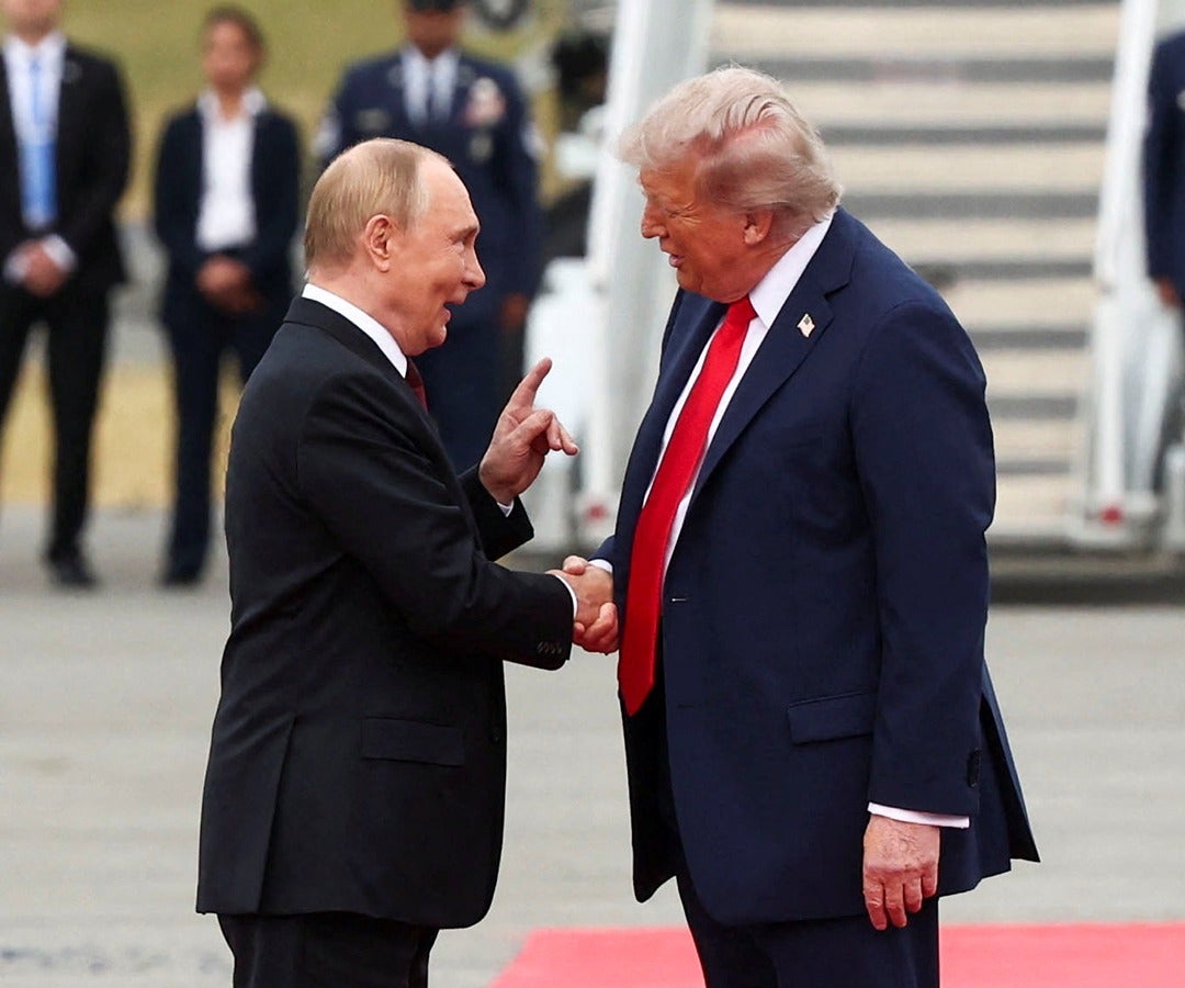 La cumbre del viernes se inauguró con un espectáculo muy bien organizado en el que el presidente estadounidense saludó a Putin en suelo estadounidense, la primera visita del líder ruso a Estados Unidos en casi una década. Ambos se encontraron en la pista, y Trump aplaudió al acercarse Putin, quien le dio la bienvenida con un cálido apretón de manos y una palmadita en el brazo.