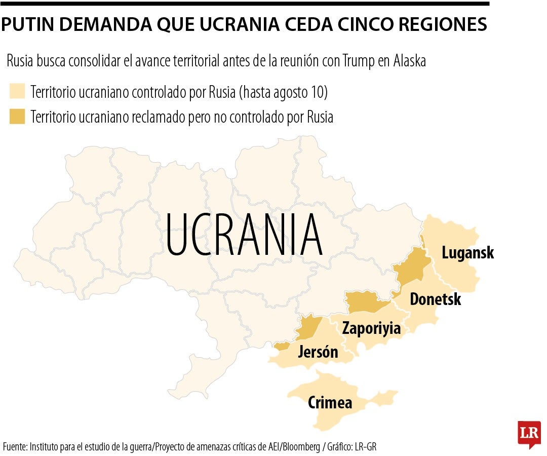 Entre las peticiones que pide Putin para poder dar fin a la guerra está primordialmente que Ucrania entregue franjas de su territorio, además, que Estados Unidos acepte el reconocimiento de facto de las conquistas territoriales de Rusia, además, quiere una declaración que impida que Ucrania se una a la Otan y que podría exigir límites a su capacidad militar y al suministro de armas, y que se celebren elecciones, otras partes de la negociación incluyen el levantamiento de las sanciones y la situación de US$300.000 millones en activos rusos congelados.