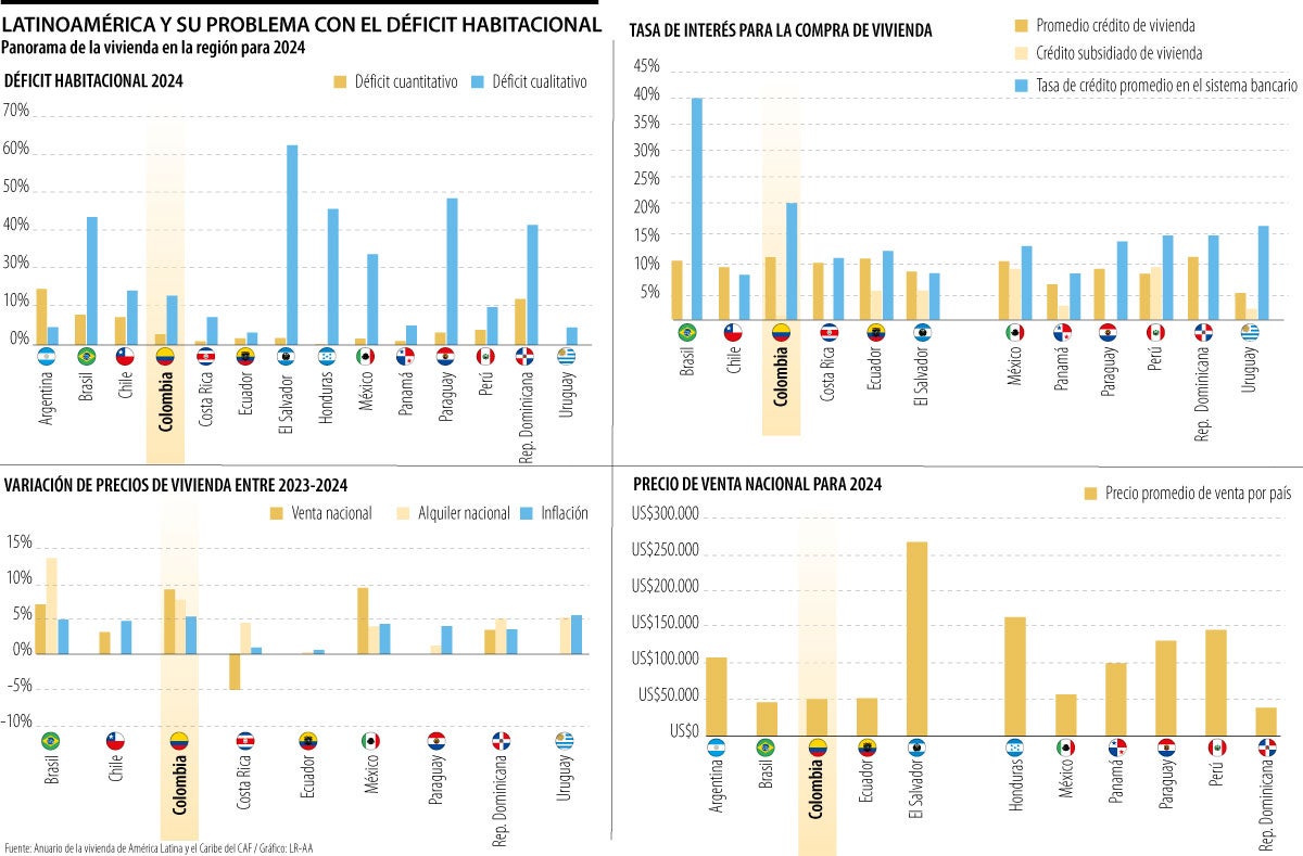 El Banco de Desarrollo de América Latina y el Caribe, CAF, presentó su anuario de vivienda, y encontró que al cierre de 2024 dos de cada 10 casas en la región estaban con déficit habitacional. En países como Colombia y México, el precio de los inmuebles superaba con creces la inflación y las tasas de interés que rondaban 8%. Pero, para entender el panorama de la vivienda latinoamericana, hay que revisar los factores que impiden que las personas puedan acceder a una habitabilidad digna.