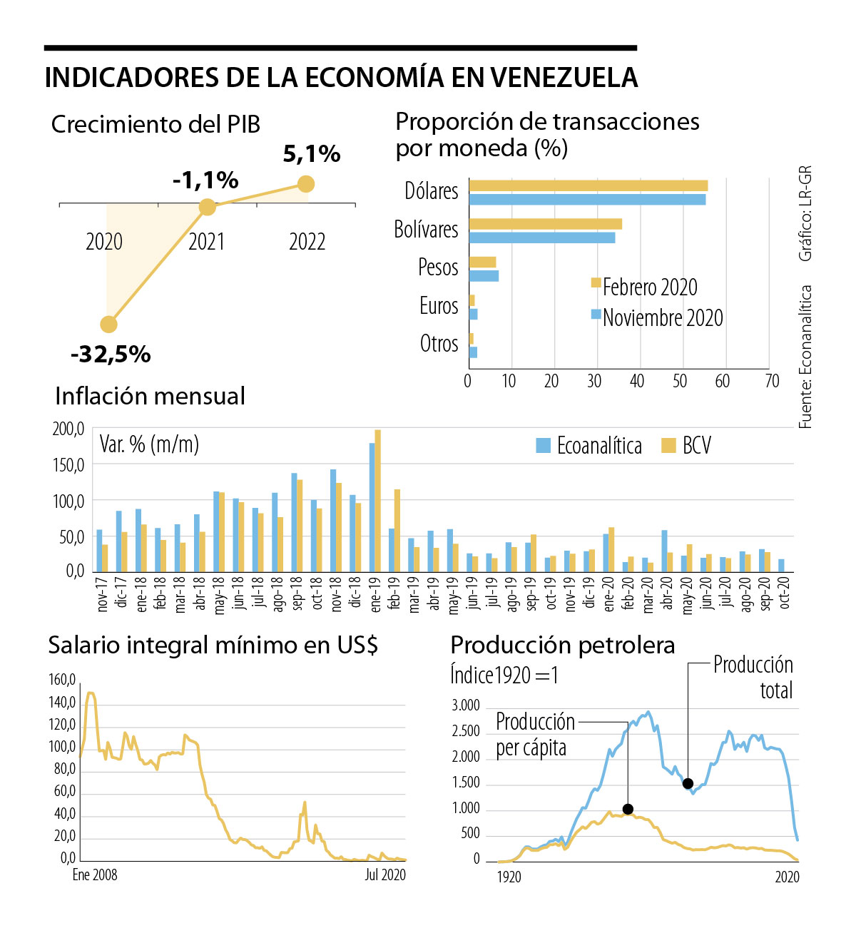 Por esto mismo desde la empresa venezolana de datos económicos Ecoanalítica publicaron un informe sobre el panorama de ese país. El primer punto que resaltan es que al cierre de noviembre, 55% de las transacciones que se realizaron allí, fueron en dólares.