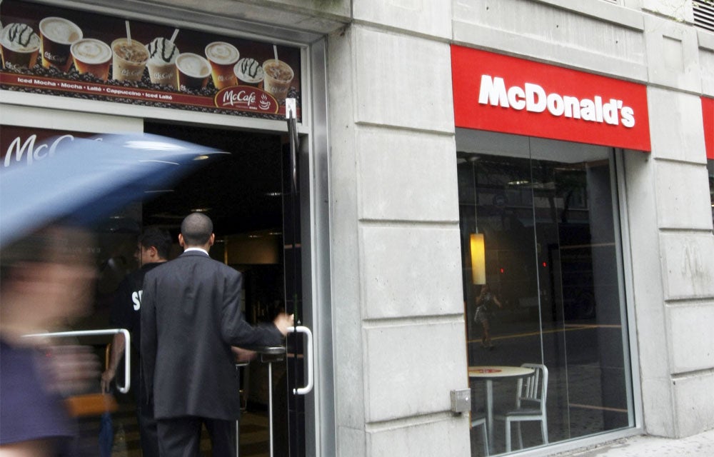 Valor emblemático del Dow Jones, McDonald's perdió 2,49%. La cadena de comida rápida vio caer 68% sus ganancias netas en el segundo trimestre y se abstuvo de ofrecer previsiones para el año debido a que su actividad se ha visto signicativamente reducida por la pandemia en todo el mundo.