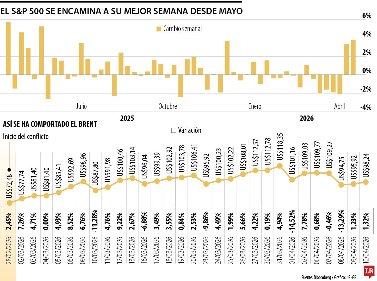 Las bolsas globales cerraron su mejor semana desde mayo en medio de un entorno marcado por la guerra en Medio Oriente, el encarecimiento de la energía y las expectativas de un acuerdo entre Estados Unidos e Irán. El repunte se dio pese a que la inflación volvió a acelerarse, en un contexto donde el petróleo se mantuvo cerca de los US$98 por barril.