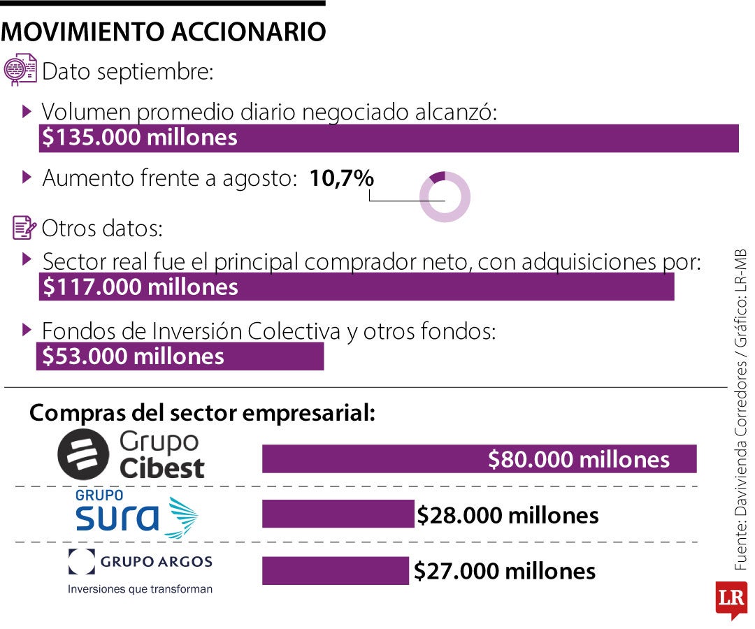 De acuerdo con un informe de Davivienda Corredores, el volumen promedio diario negociado alcanzó los $135.000 millones, un aumento de 10,7% frente a agosto
