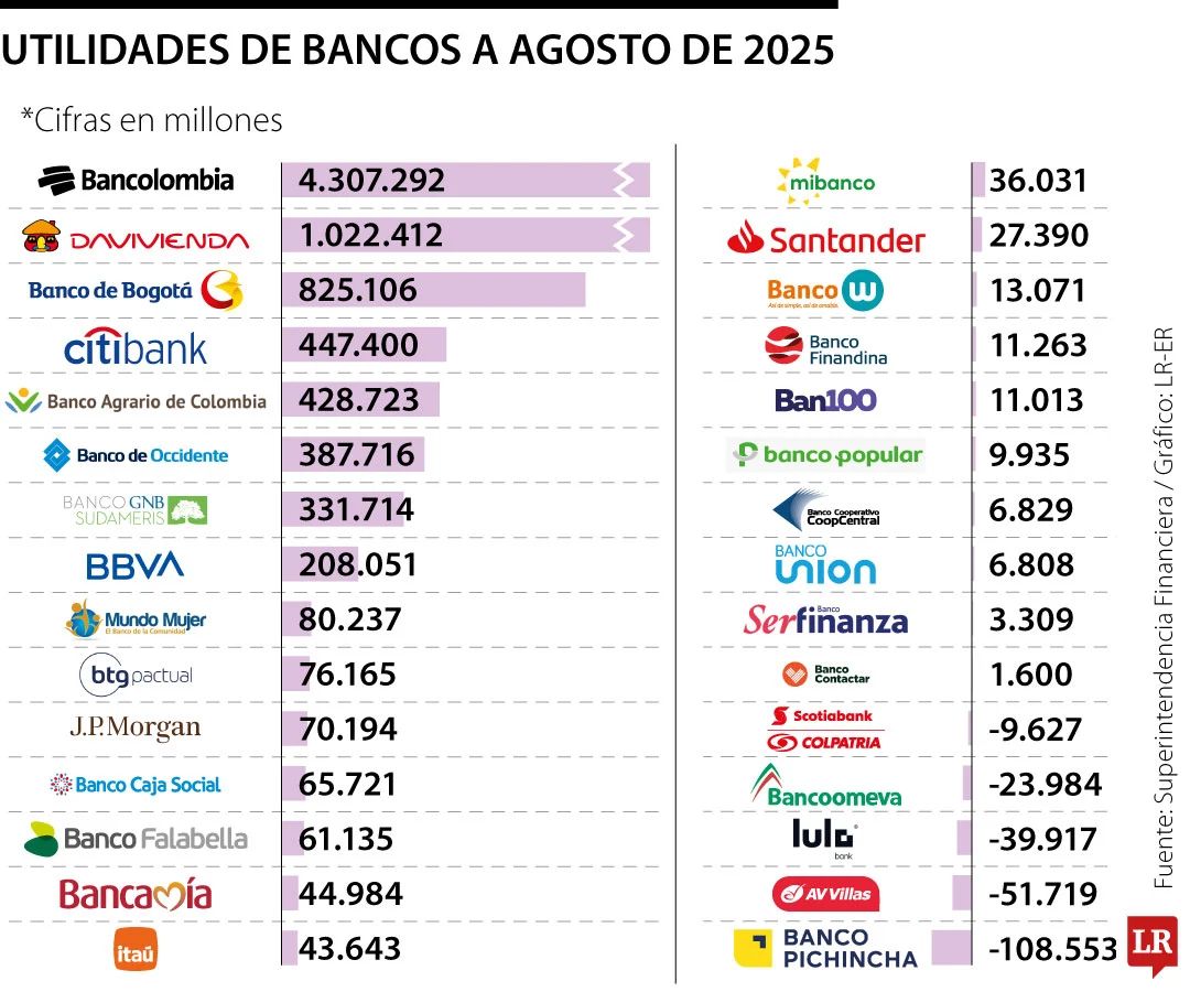 Los bancos acumularon utilidades por $8,3 billones, las corporaciones financieras sumaron $1,3 billones y las cooperativas $92.000 millones