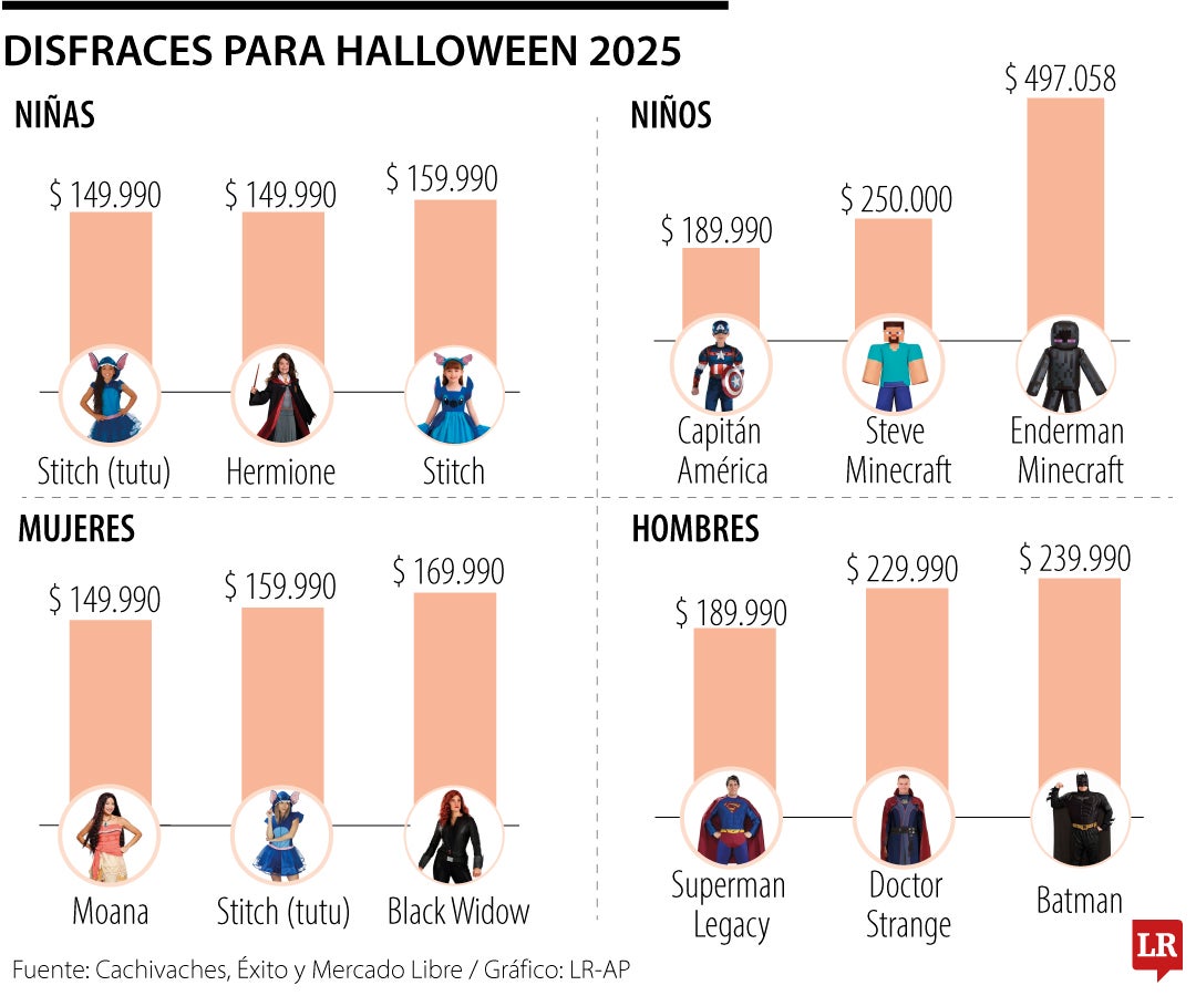 Los disfraces de las películas más taquilleras en lo que va del año van desde $65.000 el menos costoso a $400.000 el de mayor valor