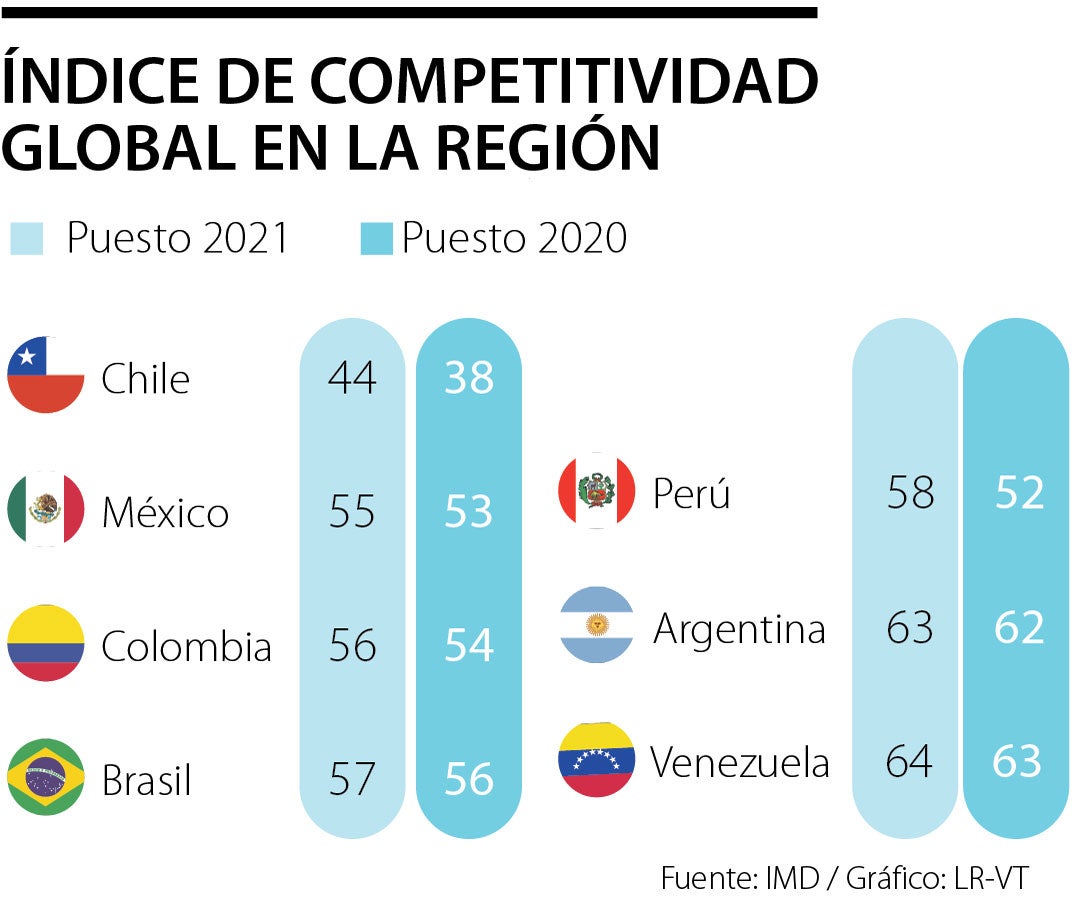 Chile es el país mejor calificado de la región en el índice de competitividad de IMD, en el puesto 38, seguido de Perú en el 52