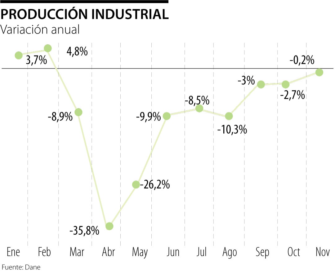 Durante lo corrido del año el Índice de Producción Industrial se ha mantenido al alza, entre enero y noviembre creció 8,2% anual