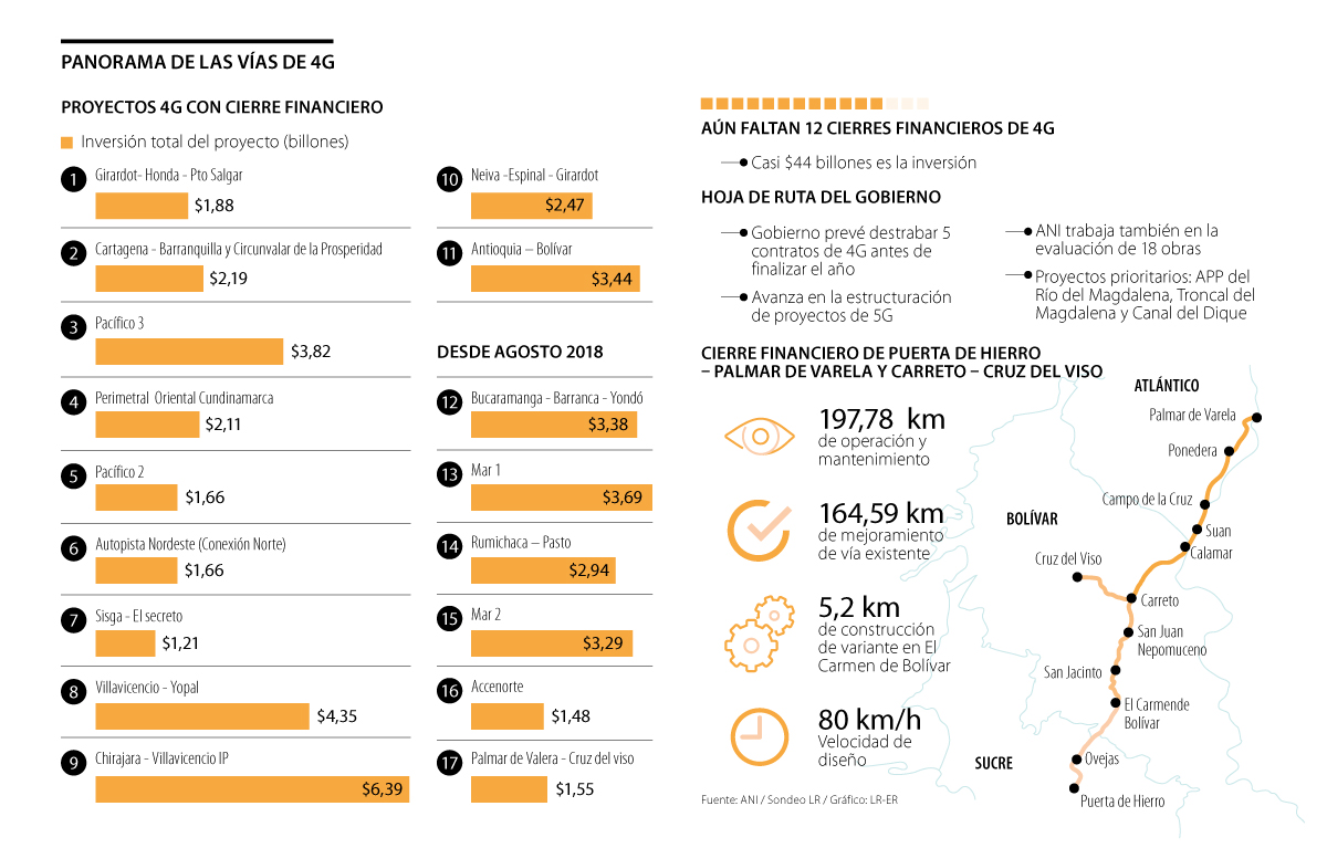 Ya son 17 carreteras del programa de Cuarta Generación (4G) que logran su cierre financiero. Con el más reciente anuncio del proyecto Puerta de Hierro - Palmar de Varela y Carreto - Cruz del Viso, el Ministerio de Transporte, a través de la Agencia Nacional de Infraestructura (ANI) confirmó que con esta vía tan solo faltan 12 tramos por estructuración financiera, un escenario que si bien muestra la retoma de confianza en el sector, impulsa varios retos para continuar trabajando.