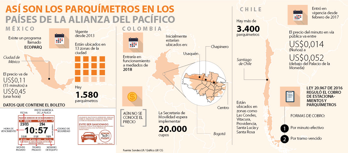 A propósito de los estudios del que sería el primer sistema inteligente de estacionamiento en Bogotá promovido por la Secretaría de Movilidad, el cual entraría en vigencia a mediados de 2018, LR indagó sobre el panorama de los parquímetros en las capitales de los países de la Alianza del Pacífico.