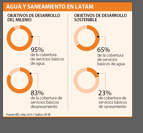 Lo mismo sucede en materia de saneamiento básico, aunque la Cepal estimó que en 2015 se había alcanzado una cobertura de 85% en la región, a la luz de los Objetivos de Desarrollo Sostenible (ODS), este indicador cae a 23%.