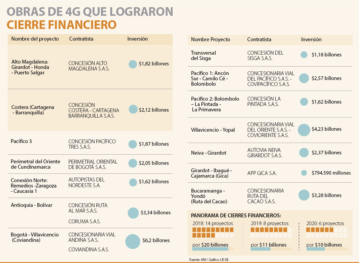 Además de estos dos proyectos, Kleyn indicó que solo cuatro más están cumpliendo con los cronogramas por encima de 35%. Estos son Pacífico 2 y 3, Girardot-Honda-Puerto Salgar y Bogotá-Villavicencio.