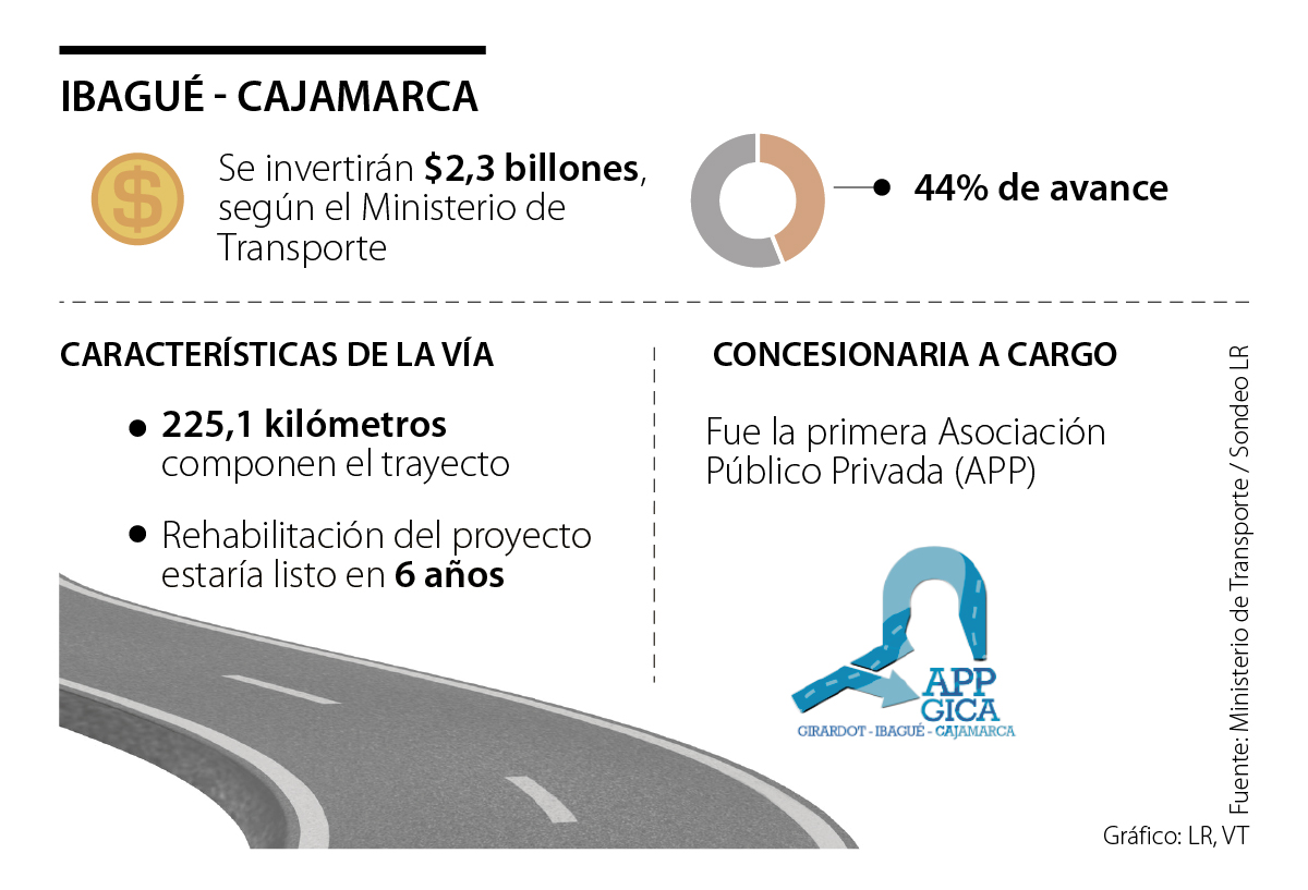 Otra de las vías que a lo largo de los años ha presentado dificultades es Ibagué- Cajamarca. No obstante, en este momento, la concesionaria Gica viene adelantando trabajos para la construcción de la doble calzada. Según el Mintransporte, se tiene previsto una inversión de $2,3 billones para desarrollar y mejorar esta autopista.