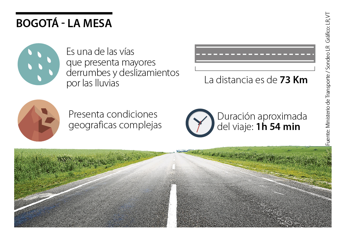Aunque la vía Bogotá - La Mesa no está contemplada en el grupo de las autopistas 4G o de tercera y segunda generación, es una de las más afectadas por los deslizamientos. De acuerdo con los expertos, presenta condiciones geográficas complejas, pues en la mayoría de su extensión pasa la alta montaña o tiene condiciones complejas. Ante estas circunstancias, el Gobierno ha venido adelantando una serie de trabajos y mantenimiento para que los 73 kilómetros que la componen no se taponen durante la temporada.