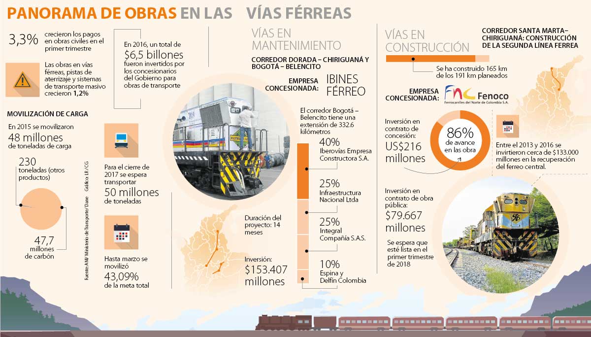 Más allá del ambicioso plan de infraestructura de carreteras del Gobierno, uno de los pilares de desarrollo está en la renovación y mantenimiento de las vías férreas. Esto debido a que desde cuatro corredores principales se busca ampliar la capacidad de carga para 2018.