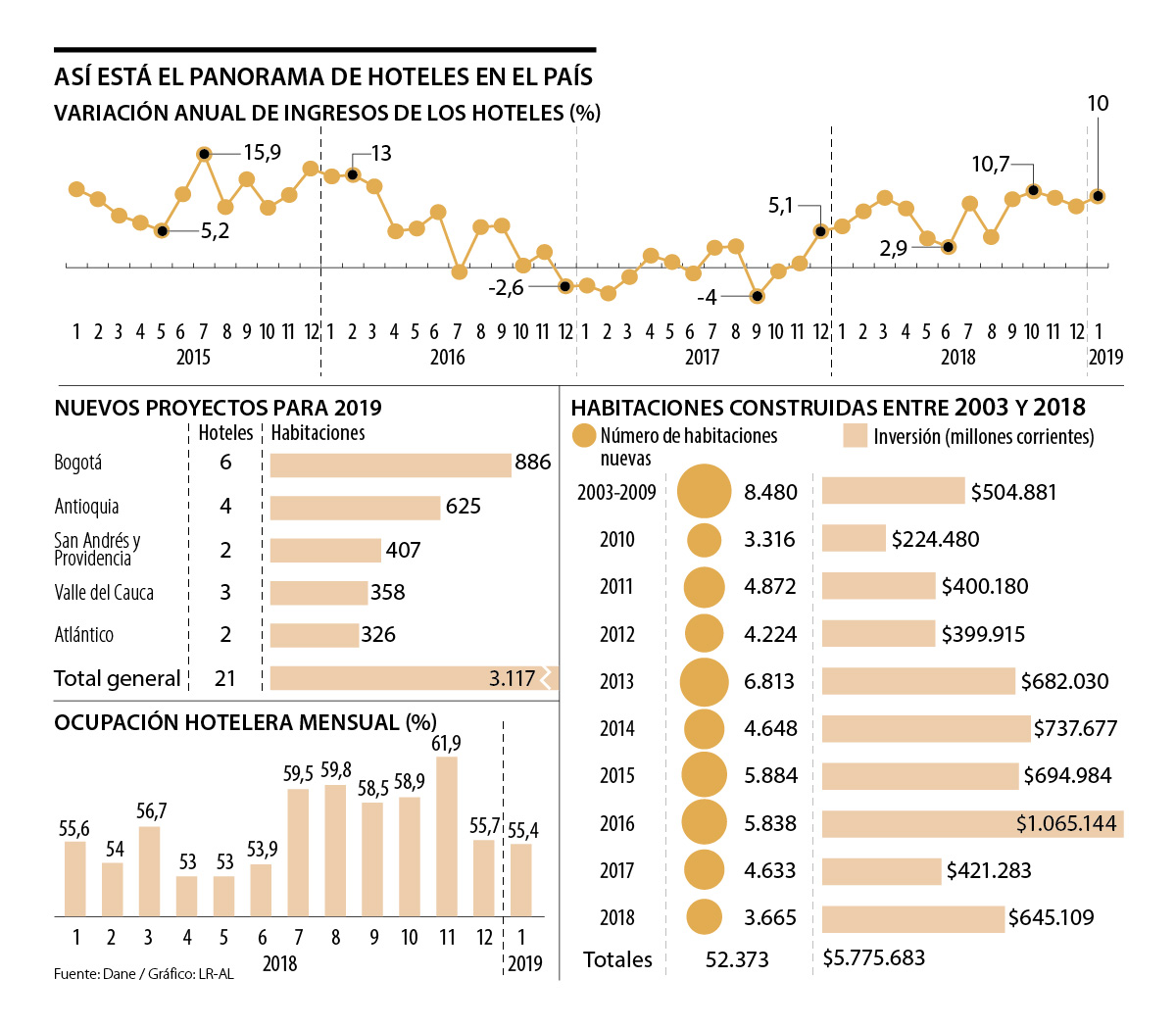 Este año se han identificado 21 nuevas construcciones que iniciarán operaciones, lo que se traduce en 3.117 habitaciones adicionales para 2019, de acuerdo con cifras de Cotelco