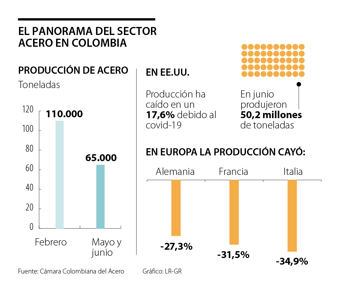 En Colombia, tal y como lo explicó la Cámara Colombiana del Acero, “la situación es particular”, ya que, según cifras de la Asociación Mundial del Acero, en junio el país se mantuvo con la misma producción que en el mes de mayo con 65.000 toneladas. Sin embargo, esto representa una reducción significativa en comparación con el mes de febrero, en el cual se reportaron 110.000 toneladas.