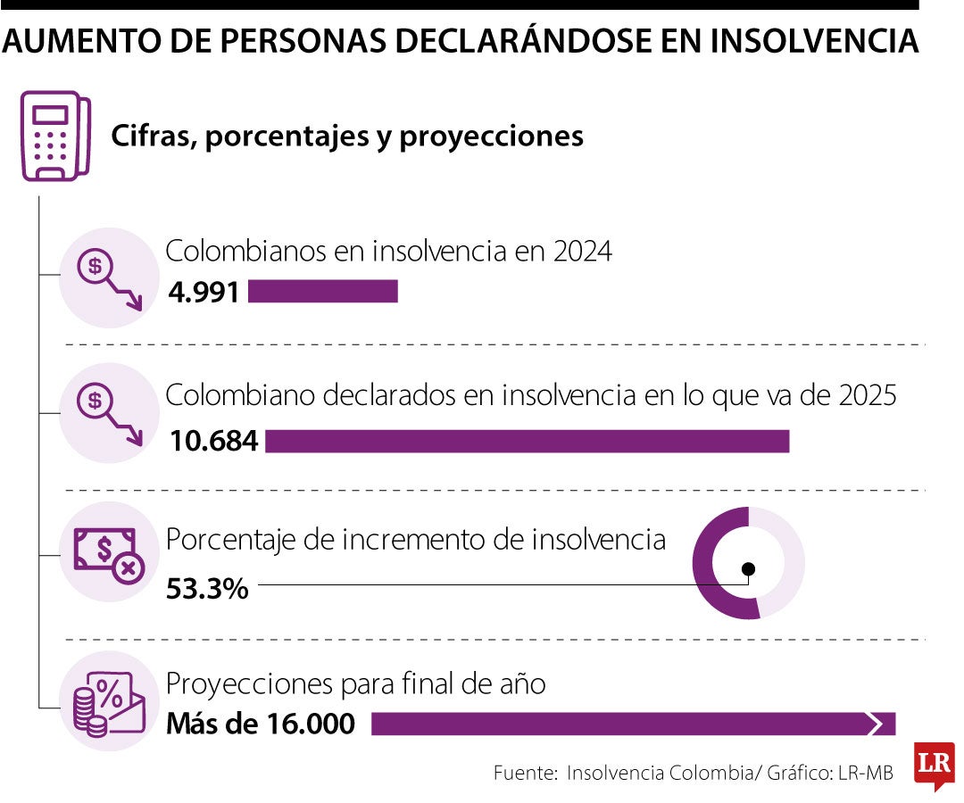La escalada de insolvencia se ve disparada cuando de una cifra cercana a 4.991 colombianos declarados en quiebra, aumentó hasta sobrepasar los 10.000