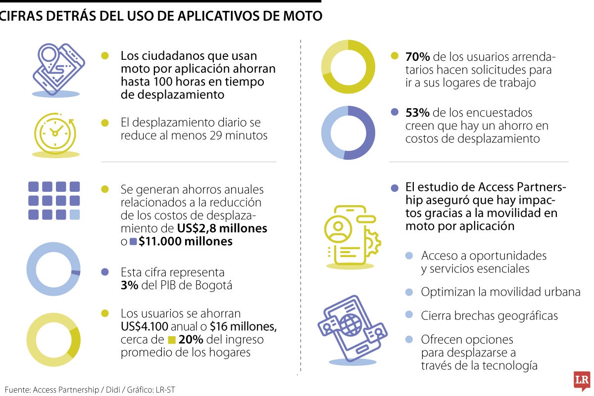 En una ciudad como Bogotá, el uso de estas aplicaciones representa un ahorro anual de $11.000 millones (US$2,8 millones), cifra que se refleja hasta 3% del PIB de la capital.