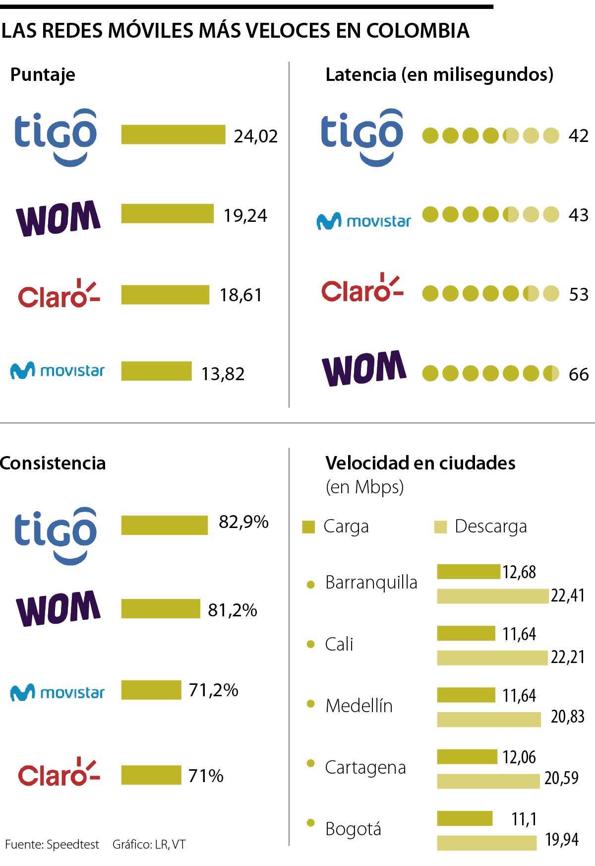 Tigo se mantuvo como la red más veloz del país durante este tiempo, mientras que Barranquilla fue la ciudad con mejores indicadores