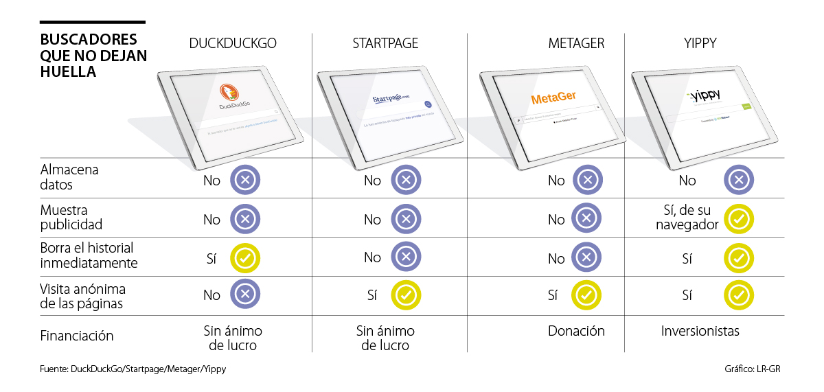 DuckDuckGo, Startpage y Metager son algunos ejemplos
