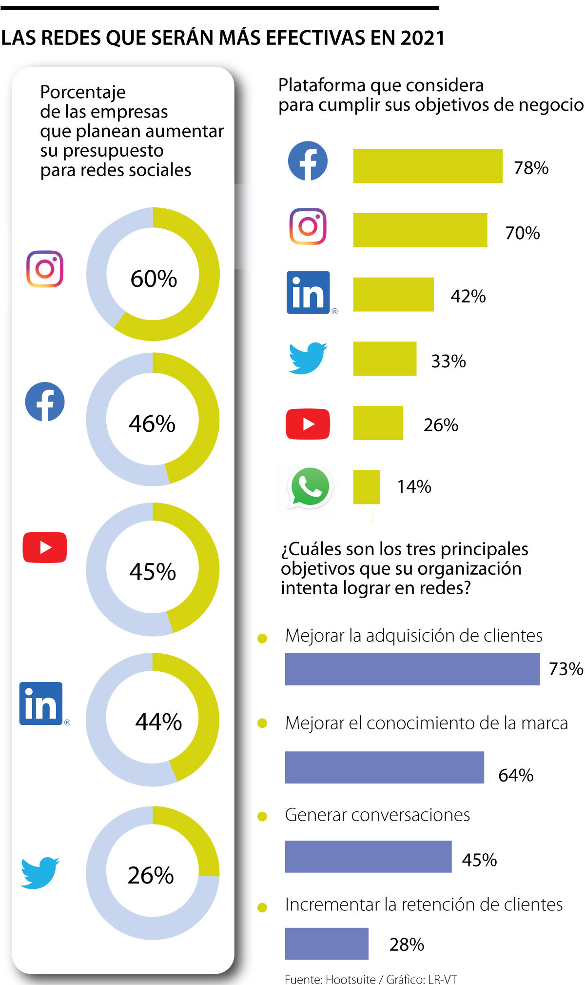 Según la encuesta anual de la plataforma HootSuite, realizada a 11.189 especialistas en marketing y a expertos de la industria, para este 2021 se identificaron cinco tendencias clave en las redes sociales.