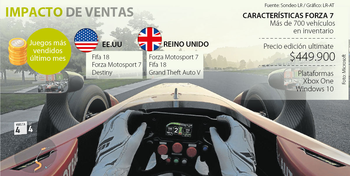 El fenómeno de Forza 7 se empezó a ver un mes más tarde de su venta en vitrinas. En Estados Unidos, Inglaterra y algunos de América Latina, compite en el primer lugar en ventas de juegos de video con Fifa 18, el título de fúbol más utilizado en el mundo.