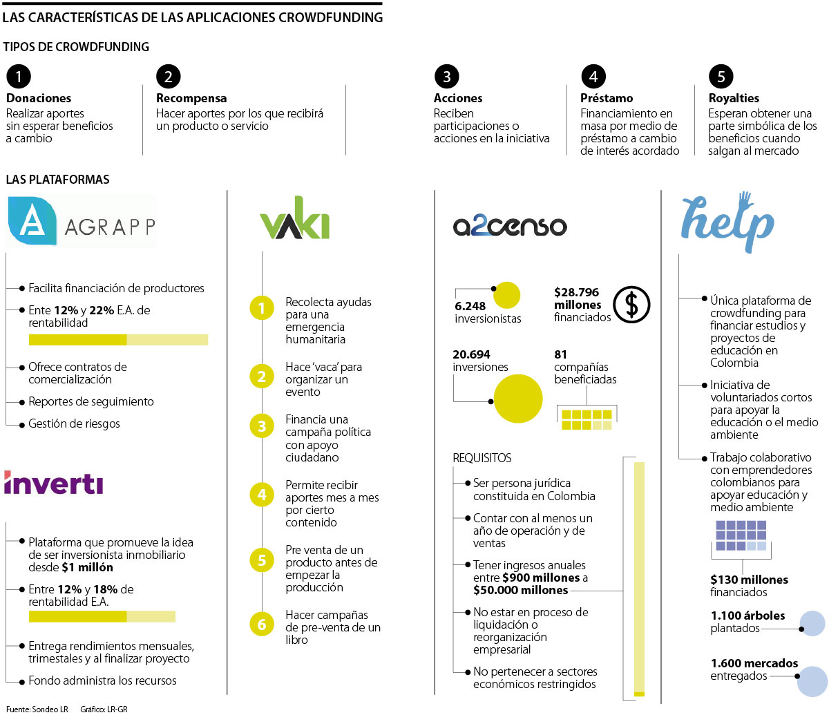 Otra de las plataformas de este tipo que ha tomado vuelo es a2censo, marca creada por la Bolsa de Valores de Colombia (BVC) para que los interesados inviertan en proyectos que son estudiados y puestos a disposición de los compradores por un tiempo limitado. Hasta el momento han financiado $28.796 millones a través de 6.248 inversionistas, 20.694 inversiones y 81 compañías beneficiadas.