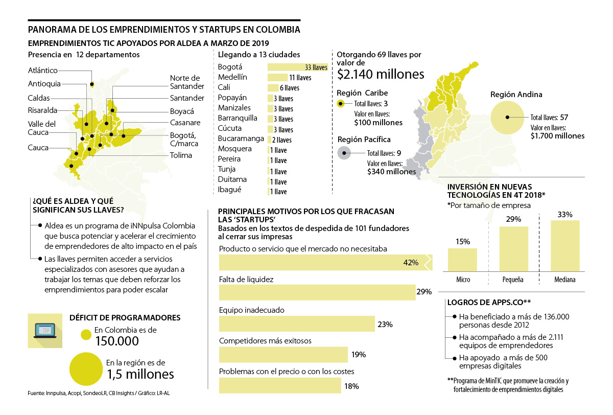 Según expertos solo 25% de las firmas que se constituyen en el país cumplen cinco años de operación, panorama que no es ajeno en el área de tecnología. Para Mauricio Jaramillo, director de Impacto TIC, “en el mundo del emprendimiento, incluido el digital, la gran mayoría no prospera”.