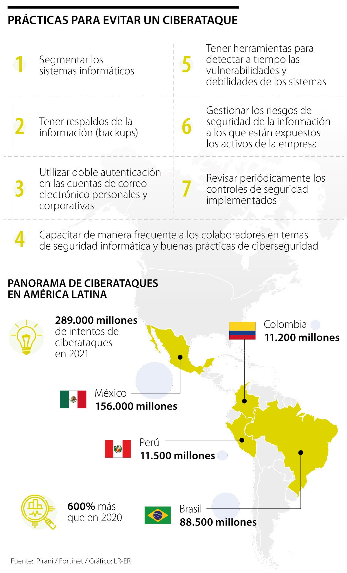 Según datos de Fortinet, líder mundial en soluciones de ciberseguridad, América Latina sufrió más de 289.000 millones de intentos de ciberataques en 2021, es decir, que el incremento con respecto a 2020 fue de 600%. México fue el país que más intentos de ataques recibió (156.000 millones), seguido de Brasil (88.500 millones), Perú (11.500 millones) y Colombia (11.000 millones). “El incremento ha sido notable, por lo que las organizaciones en la región deben estar mejor preparadas”, advierte Arturo Torres, estratega de ciberseguridad de Fortinet.