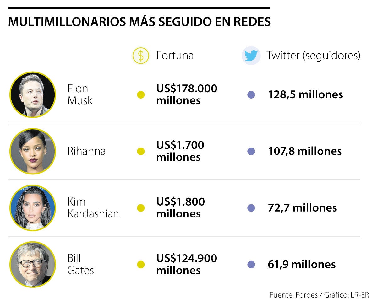 Contar con millones de seguidores en las redes sociales genera confiabilidad e influencia dentro de la audiencia y si a eso se le suma ser multimillonario, el impacto es mayor. Son contados los ultra ricos que tienen un patrimonio de US$1.000 millones o más y que cuentan con abundantes seguidores en sus redes sociales.