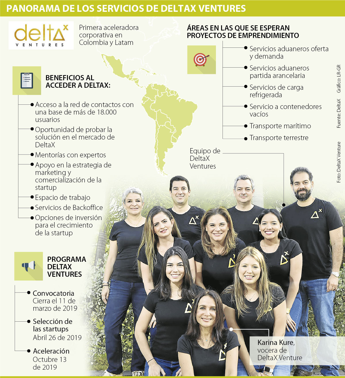 Con el objetivo de aprovechar los emprendimientos para mejorar y optimizar la cadena logística del país nació DeltaX Ventures, la primera aceleradora corporativa que surge de ese sector. Karina Kure, vocera de DeltaX Ventures, explicó que la iniciativa surge del Grupo Puerto de Cartagena con el propósito de inyectar capital a las startups que ofrezcan soluciones en diferentes áreas, las cuales pueden ir desde el transporte de carga hasta la identificación de tarifas.