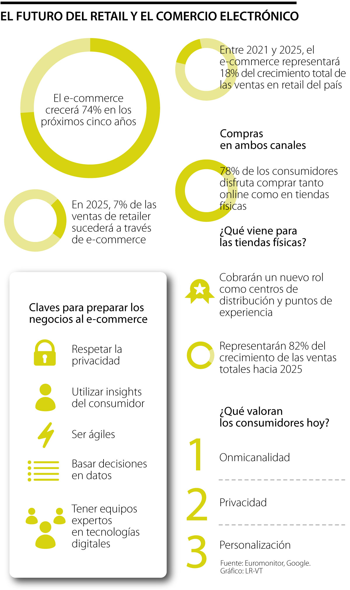 “Con ese crecimiento de 74% que proyectamos entre 2021 y 2025 en el comercio electrónico, al final de 2025, 7% de la facturación total del país en retail va ir por vía electrónica”, precisó Marcos Aramburu, gerente de marketing de producto en Google.