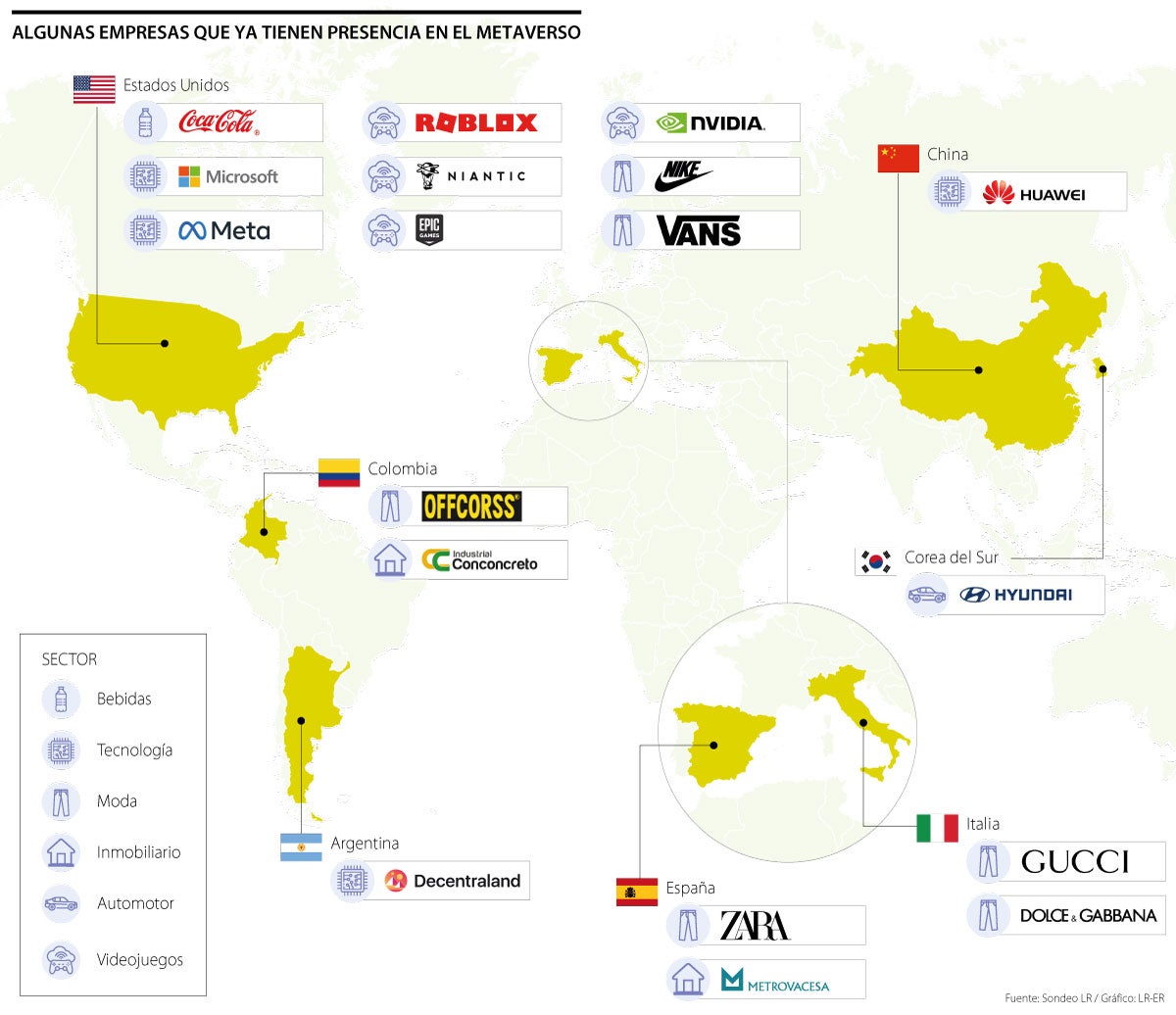 La venta de ropa también es un mercado que se espera esté muy presente en el metaverso. Este año Zara sacó Lime Glam, una colección de primavera que se podía adquirir de forma virtual, pero también en físico. Para comprarla se debía crear un avatar en una aplicación y ahí el cliente podía medirse la ropa para saber cómo se le veía y si le interesaba adquirirla. Offcorss fue la empresa que en Colombiatex, evento de moda que se realiza una vez al año donde se exponen las nuevas colecciones de diferentes marcas y diseñadores, presentó su ropa con modelos creados en esa realidad virtual.