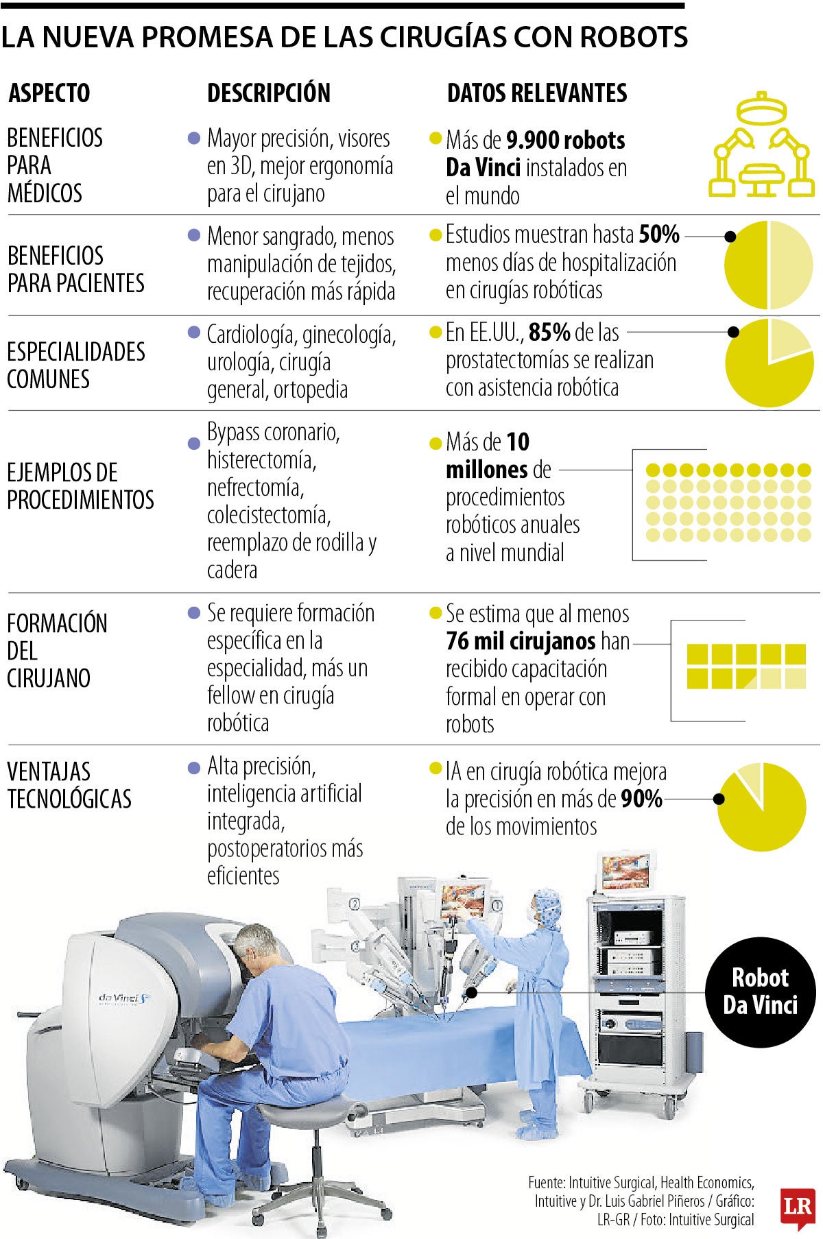 Estos avances tecnológicos vienen transformando el ejercicio quirúrgico, especialmente por la mejora que han dado en la ergonomía del cirujano y en la visión tridimensional de los campos operativos. De hecho, a nivel mundial en este momento existen cerca de 9.9000 robots Da Vinci instalados en hospitales, que son herramientas hechas para realizar cirugías poco invasivas, lo que demuestra la gran aceptación que están teniendo y la posible expansión tecnológica a nivel mundial.