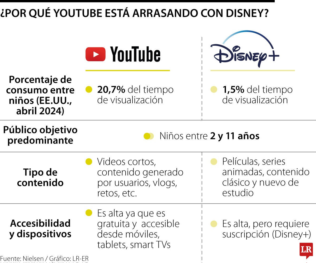 Un reciente informe de Nielsen, líder mundial en medición de audiencias, datos y análisis, mostró un giro contundente en los hábitos de consumo audiovisual de los niños, pues de acuerdo con la compañía YouTube, superó a Disney como la plataforma de entretenimiento más vista por el público infantil.