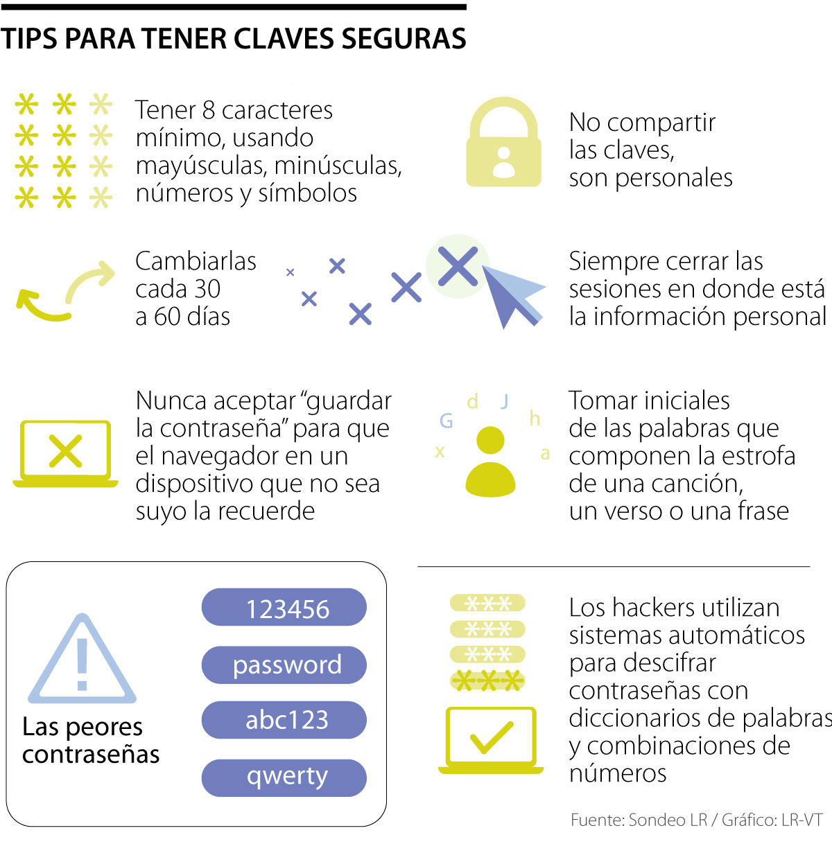 Por ello Enrique Fenollosa, el gerente general Latam de S2 Grupo, recomendó evitar palabras o secuencias numéricas y datos familiares, ya que se expone a personas conocidas o contactos de redes sociales.