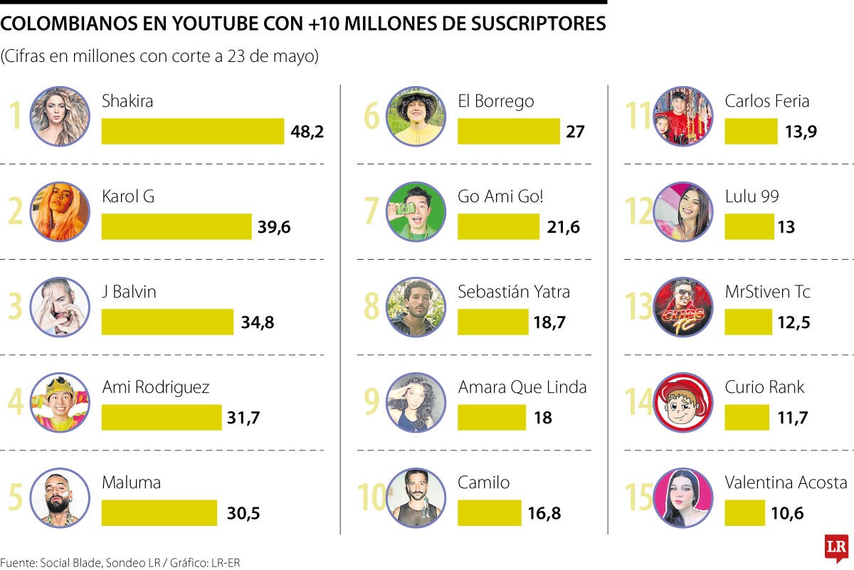 Esta es la lista de los colombianos con más de 10 millones de suscriptores en YouTube