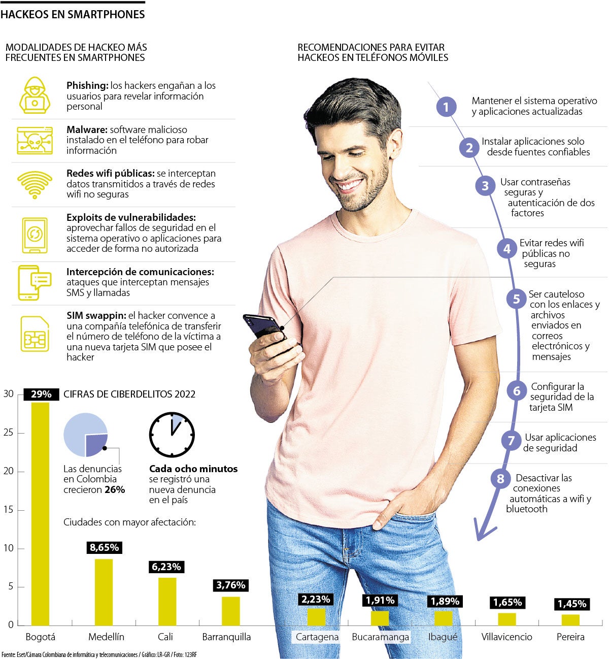 Teniendo estas cifras en cuenta, y el hecho de que en Colombia hay más de 77 millones de líneas móviles activas, es importante tener en cuenta los hackeos más usuales de celulares y las recomendaciones de los expertos para evitarlos.