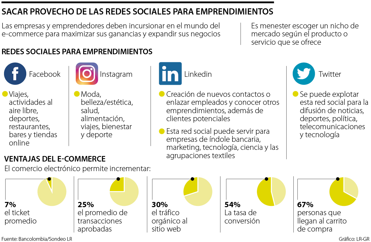 Por esta razón, hay varias redes sociales que las empresas emergentes pueden usar para impulsar su crecimiento comercial. Para Mario Pino, director general en Xharla, los emprendedores deben apostar por nichos específicos en la red, pues el experto aseguró que número de seguidores no es sinónimo de éxito corporativo. “Se debe escoger un nicho donde proyectarse. Uno de los problemas de las redes sociales es que nos movemos por números de millones de seguidores y esta es la idea de tener influencia. Sin embargo, esta idea dista mucho de la realidad”, explicó.