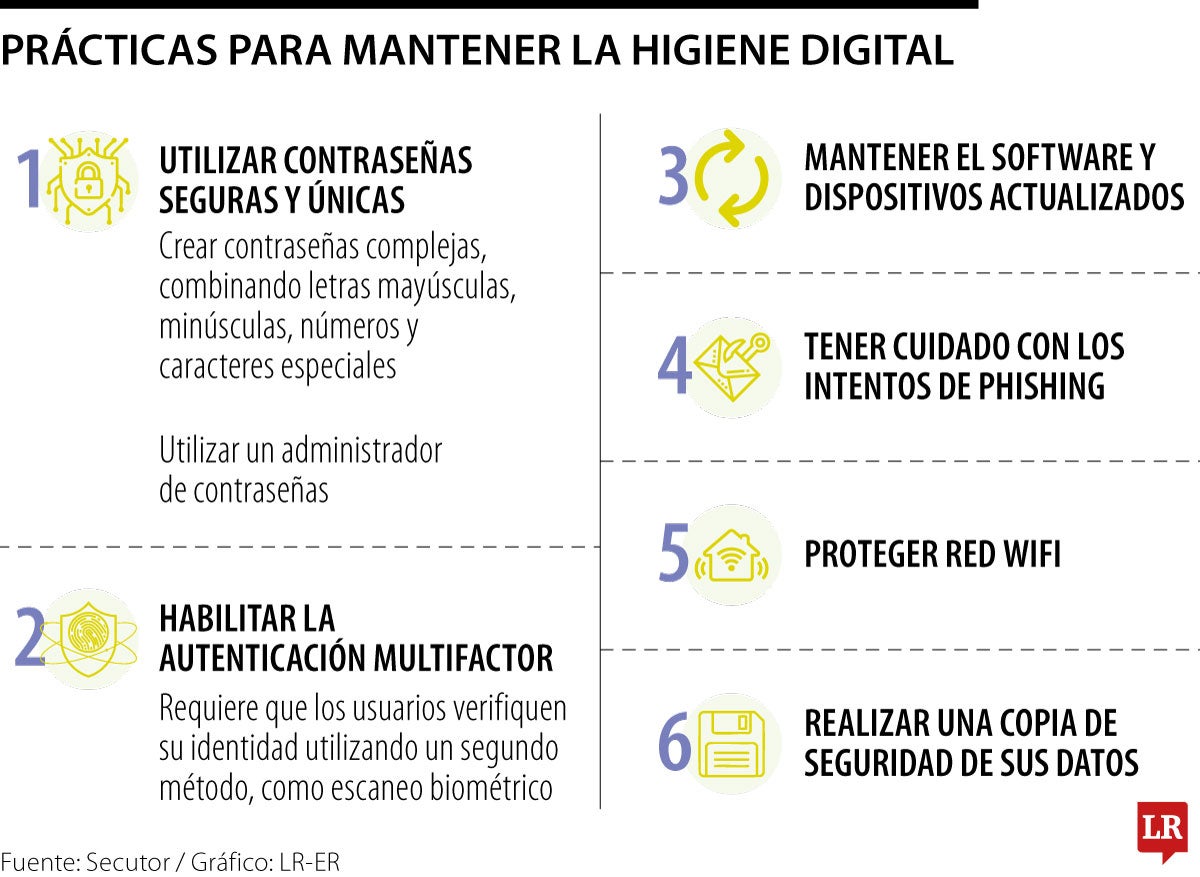 El sitio web Secutor lanzó una serie de recomendaciones para fortalecer la limpieza digital, prácticas que se recomiendan al menos una vez al mes. En primer lugar, está la utilización de contraseñas que sean seguras y únicas. Es recomendable crear patrones complejos con una combinación de letras mayúsculas, minúsculas, números y caracteres especiales. Utilice un administrador de contraseñas para almacenarlas de forma segura.