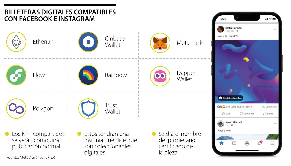 Meta anunció que ahora en Estados Unidos los usuarios pueden conectar sus billeteras virtuales y compartir sus coleccionables digitales a través de Facebook e Instagram. Esto hace que se posibilite la opción para que los usuarios puedan compartir los coleccionables que tienen de su propiedad.