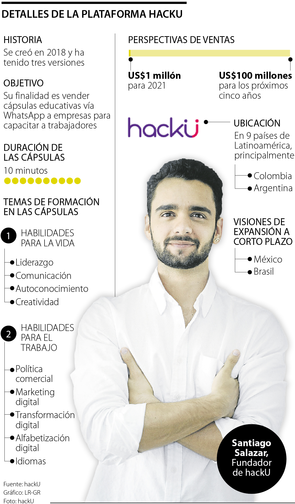 “hackU es una compañía que envía contenido de 10 minutos a través de WhatsApp con un coaching educativo personal y rápidamente nos empezamos a convertir en esa solución para las empresas, para lograr educar a sus trabajadores”, aseguró Salazar.