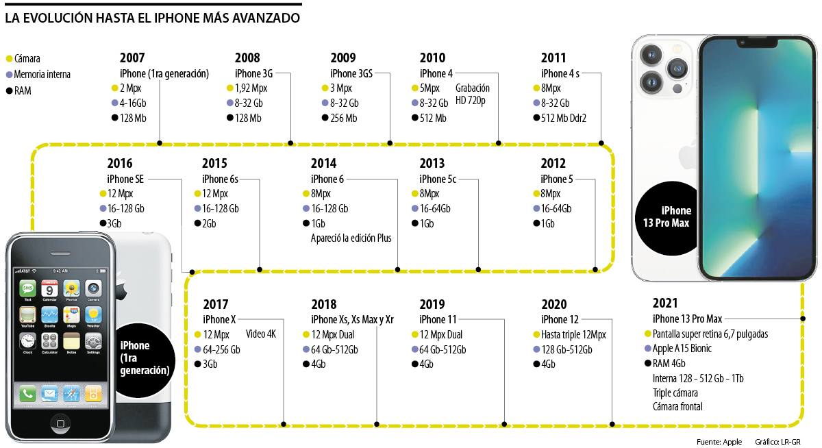En compras online de Black Friday, iPhone 13 y sus accesorios fueron el modelo más buscado, detrás hay una línea de tiempo de desarrollo