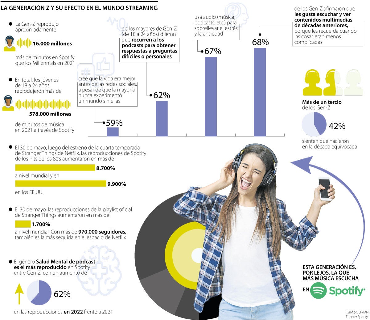 Uno de los datos más contundentes: los jóvenes de 18 a 24 años reprodujeron más de 578.000 millones de minutos de música en 2021 a través de Spotify, más minutos que cualquier otro grupo y aproximadamente 16.000 millones de minutos más que los Millennials, la cual era la generación que llevaba hace unos años la vanguardia en el tema digital.